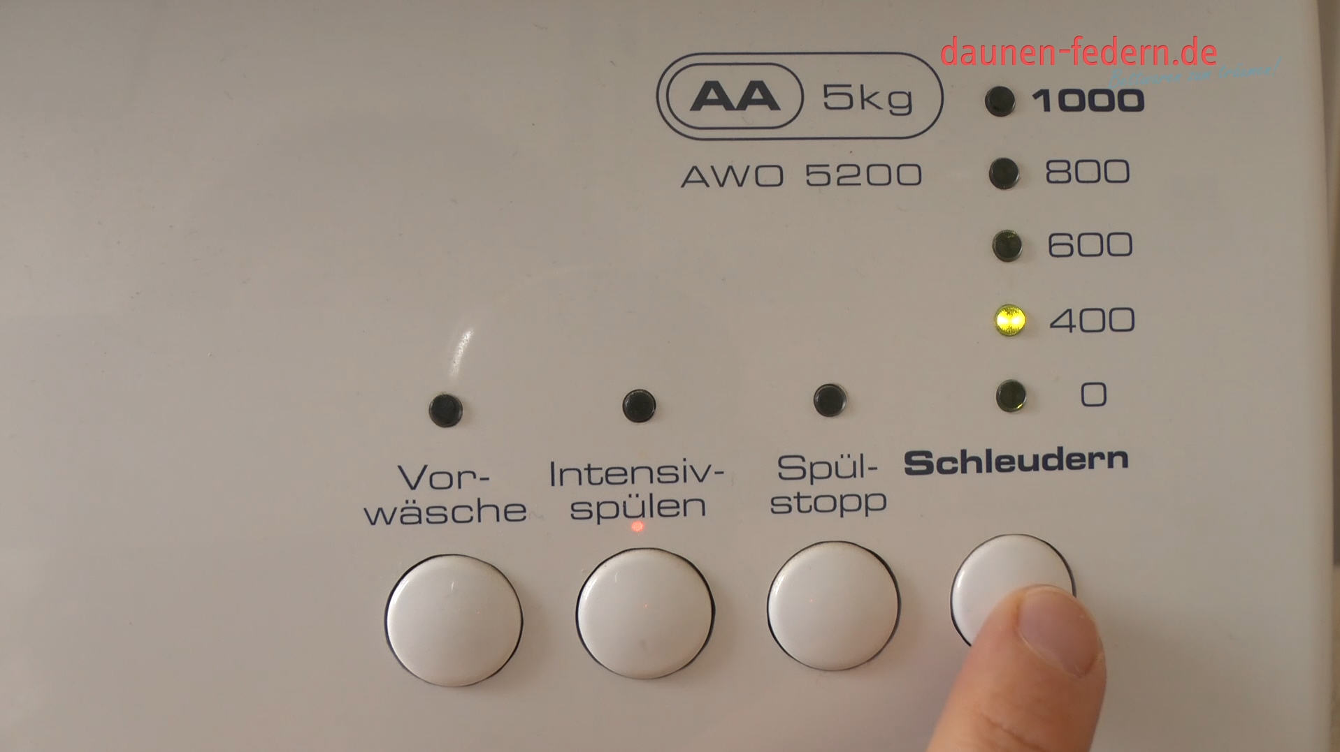 Nun stellen Sie die Waschmaschine auf eine geringe Schleuderzahl ein, z.B.: 400.