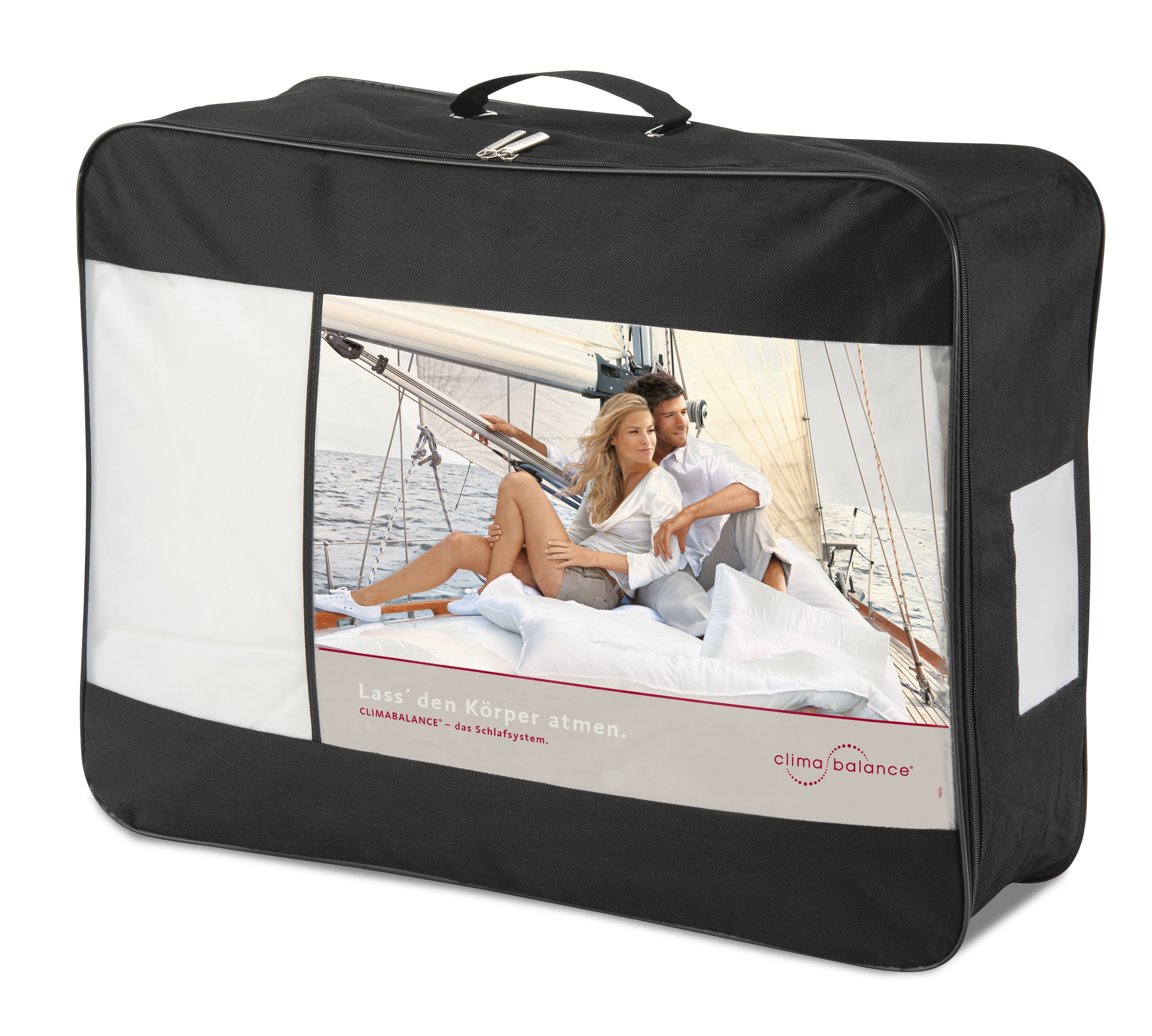 Die CLIMABALANCE ® Sommerdaunendecke ist bis 60°C maschinenwaschbar, ab einem Fassungsvermögen von 7 kg. Gründlich im Wäschetrockner trocknen - nicht übertrocknen